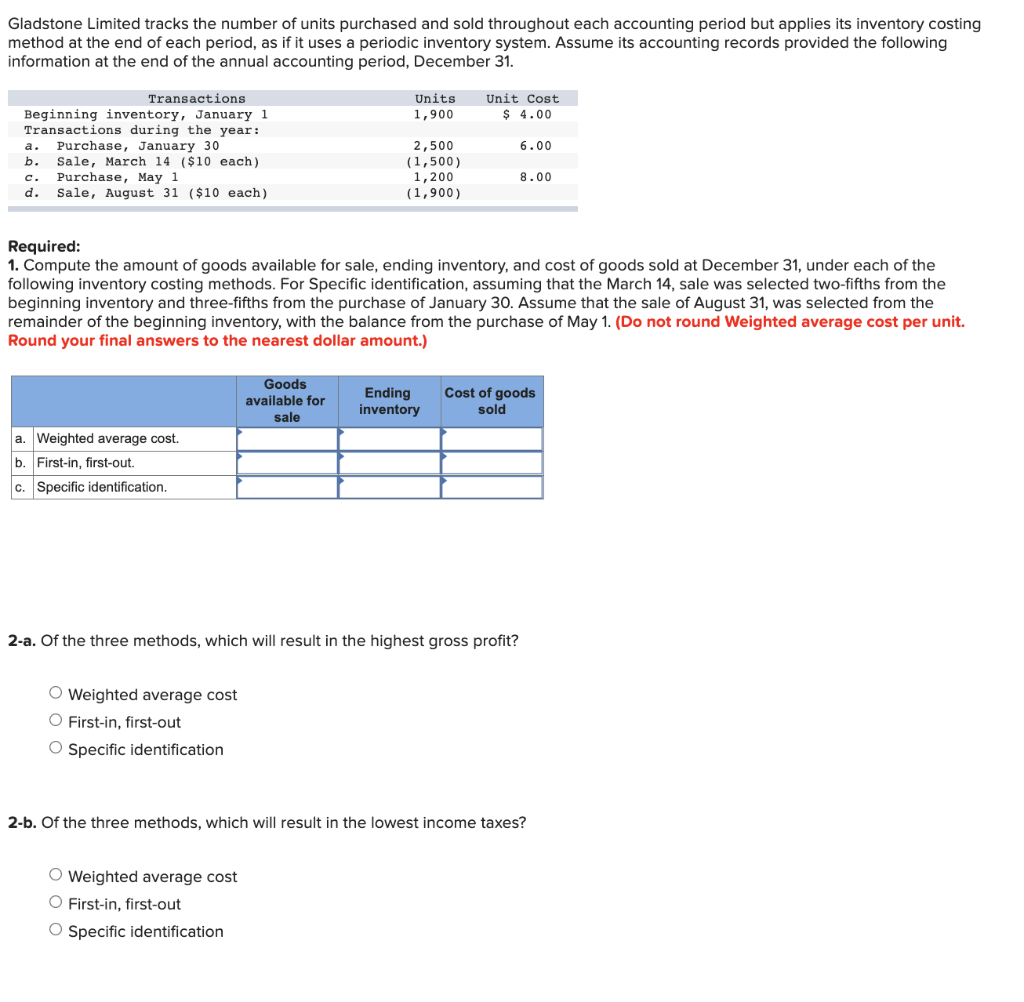 Solved Gladstone Limited Tracks The Number Of Units Chegg Com